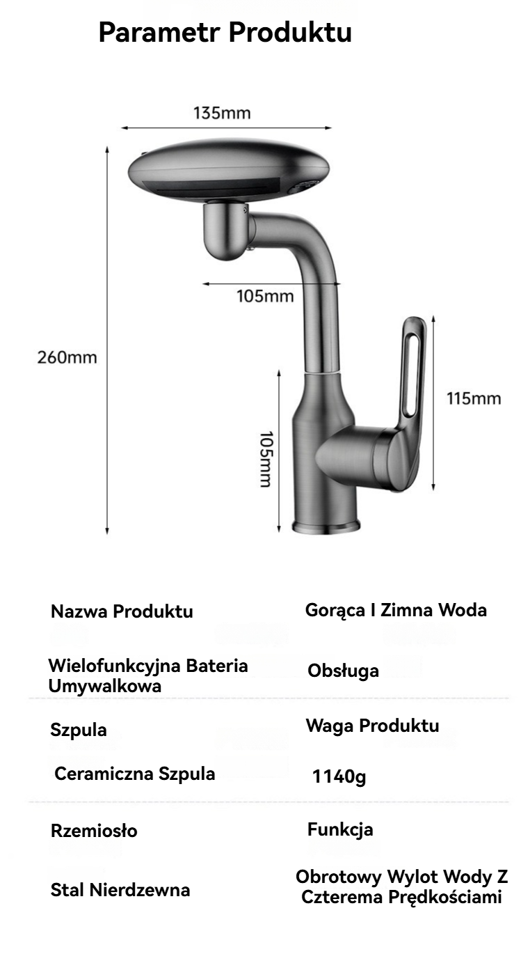 Wielofunkcyjna Obrotowa Bateria Umywalkowa